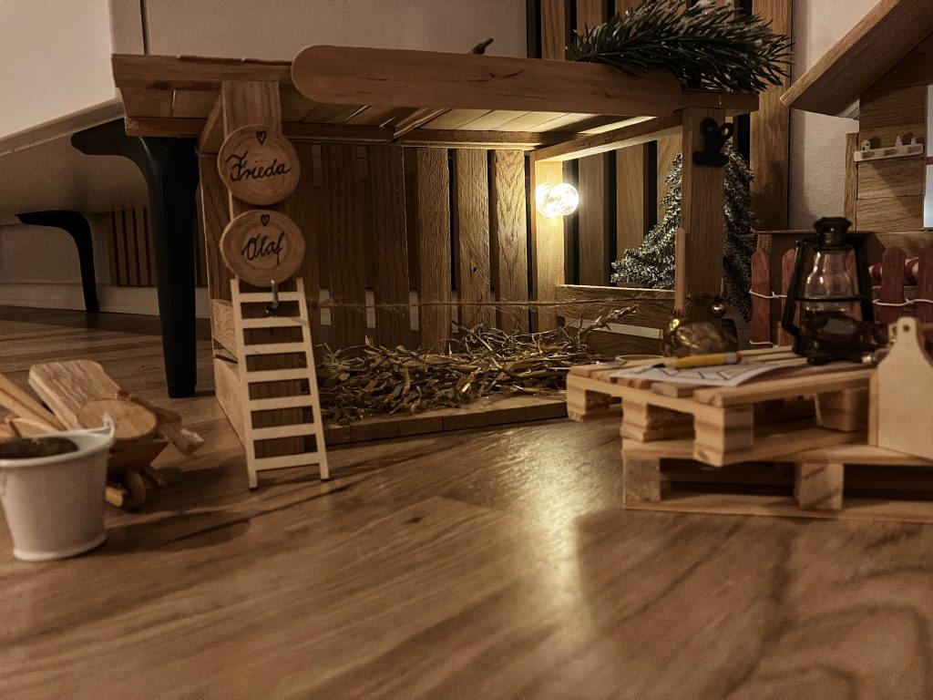 Lange mussten wir aber nicht suchen – Frieda und Olaf hatten nach kurzer Zeit genug vom Versteckspiel und zeigten sich hinter Lichterhaus und Blumentopf, sodass nun auch ihr Stall wieder mit Leben gefüllt werden konnte.