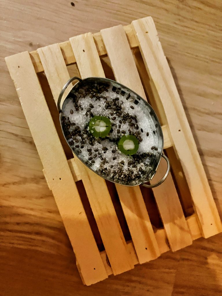 ♥ In die kleine Zinkwanne* gibst du einfach etwas Zucker und vermischst sie mit den Zaubersamen (Chiasamen).