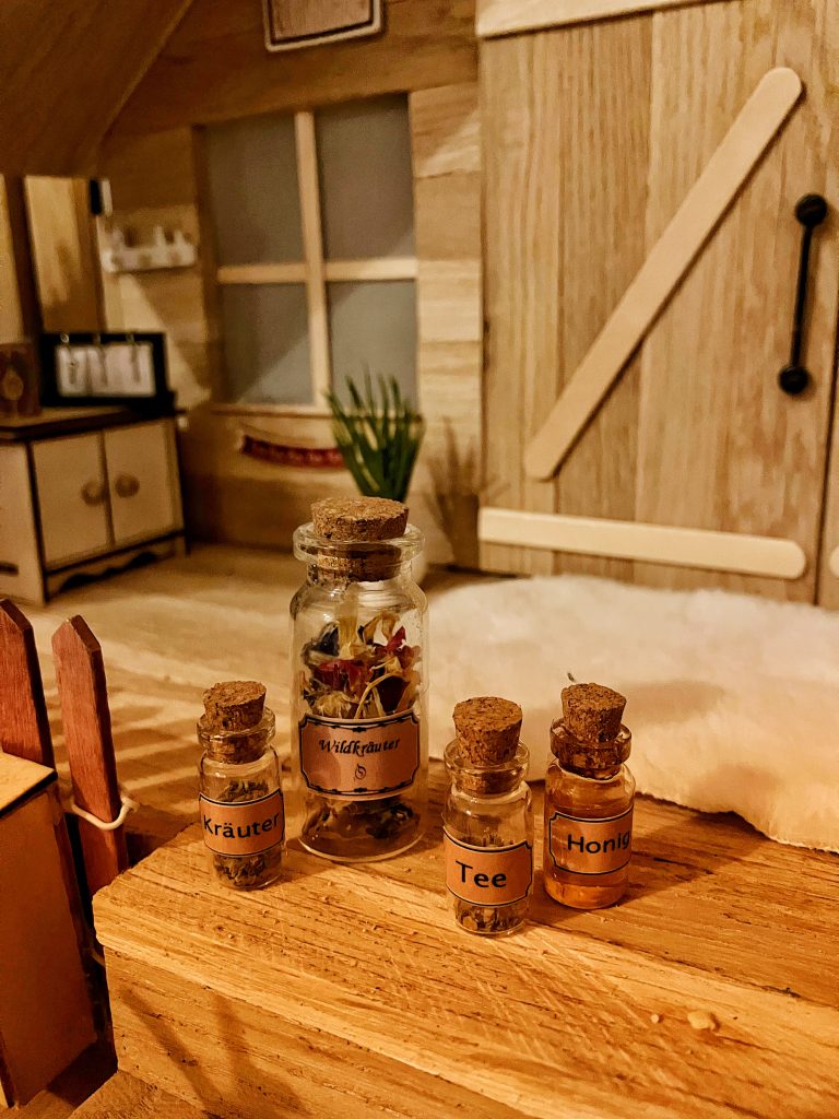 Damit mal etwas mehr Ordnung herrscht und die kleinen Zauberflaschen mit der Wichtelmagie nicht irgendwo raus- oder runterfallen, hat Snorre einen Zauberschrank gebaut.