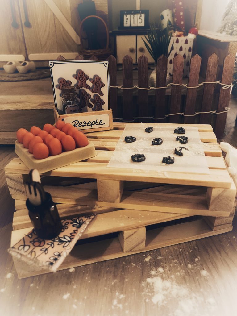 Heute duftet es herrlich nach Zucker, Milch und Weihnachtszauber! Snorre hat seine kleine Wichtelbäckerei eröffnet. Auf seiner winzigen Werkbank stehen Milchfläschchen, eine Schüssel mit Schneezucker und ein Mini-Schneebesen – alles bereit für den großen Backtag.