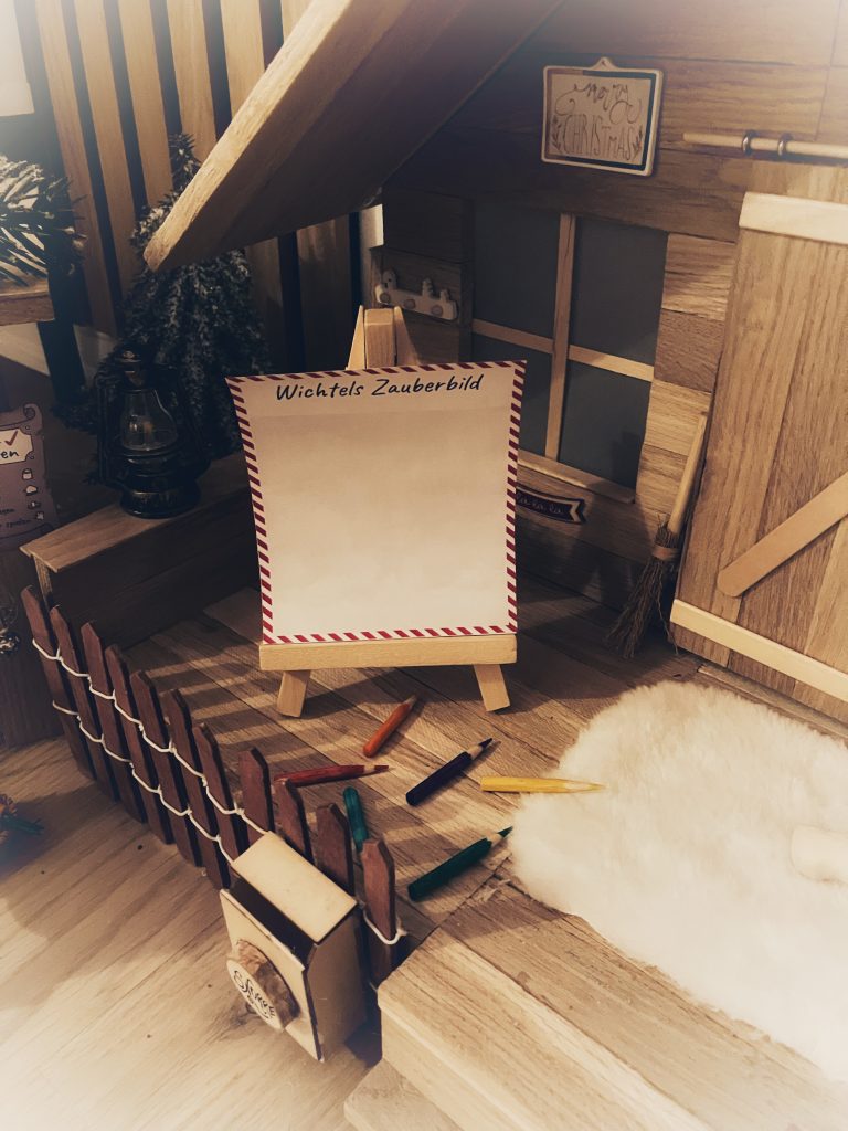 Nachdem die Kinder schon seit Herbst ganz aufgeregt und fast täglich fragten, war klar, dass auch in diesem Jahr der Wichtel zurückkehren würde. Früher als geplant hat er sich also auch diesmal still und leise bei uns eingerichtet. Eines Morgens war die kleine Tür einfach wieder da, nachdem fleißig gerufen und gewerkelt worden war.
